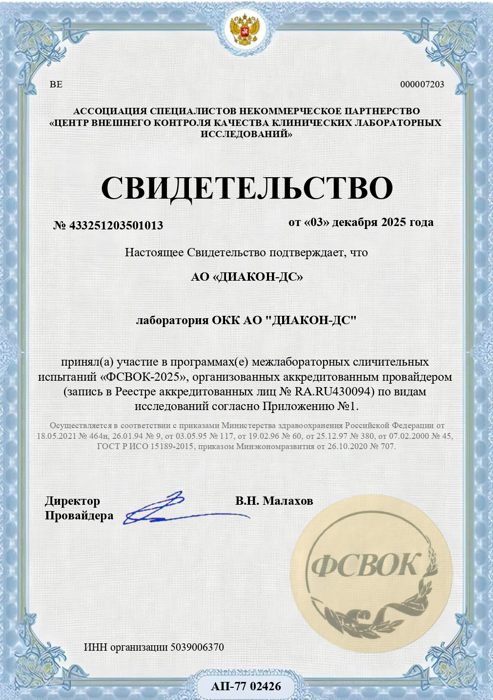 Отдел Контроля Качества АО «ДИАКОН-ДС»