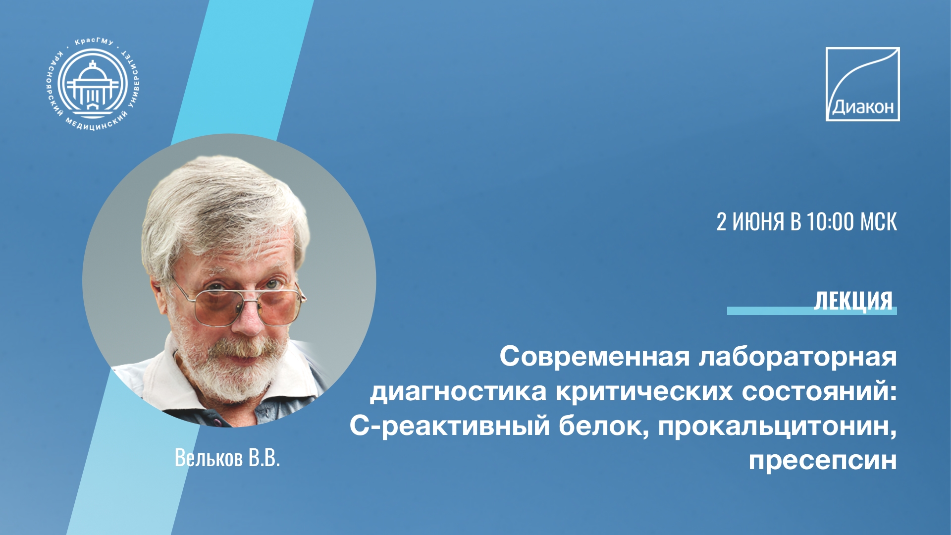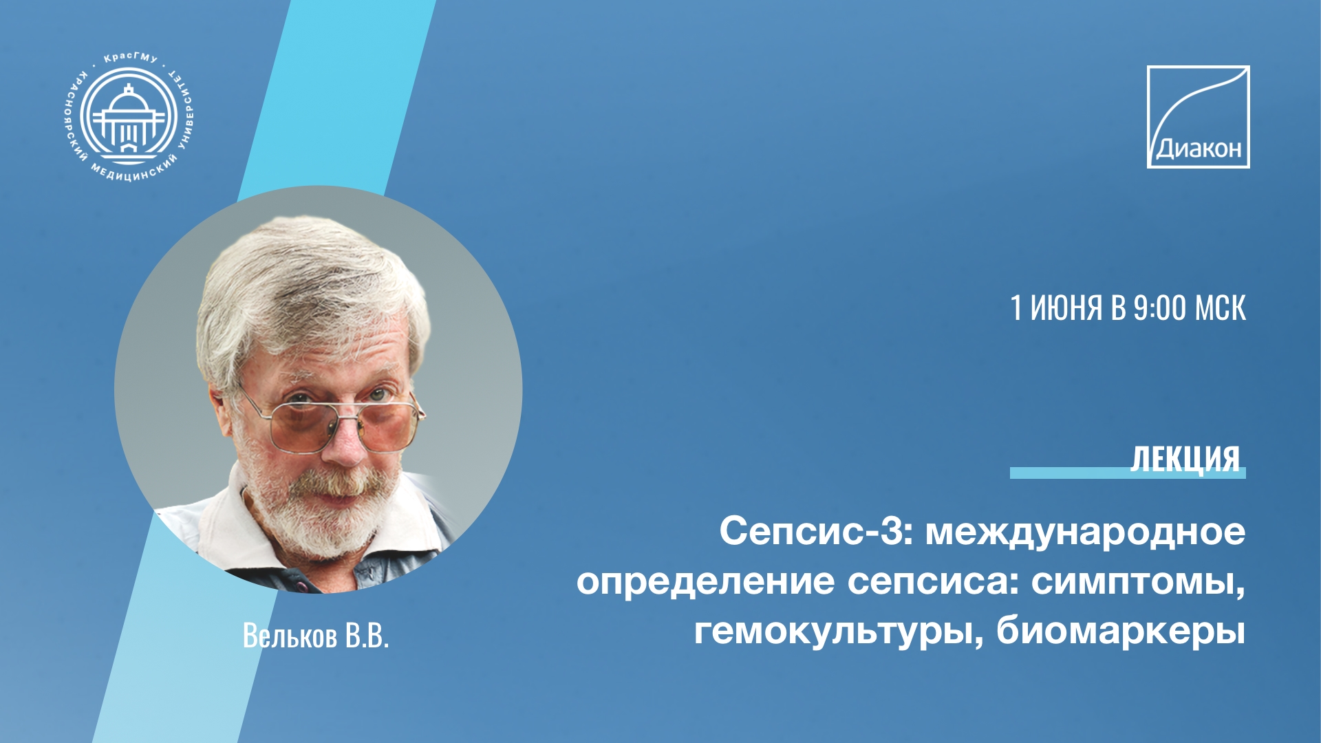 Компания ДИАКОН принимает участие в обучении специалистов здравоохранения с лекциями по актуальным темам лабораторной медицины. 1 июня с лекцией на тему «Сепсис-3: международное определение сепсиса: симптомы, гемокультуры, биомаркеры» выступит директор по науке АО ДИАКОН, к.б.н. Василий Вельков.