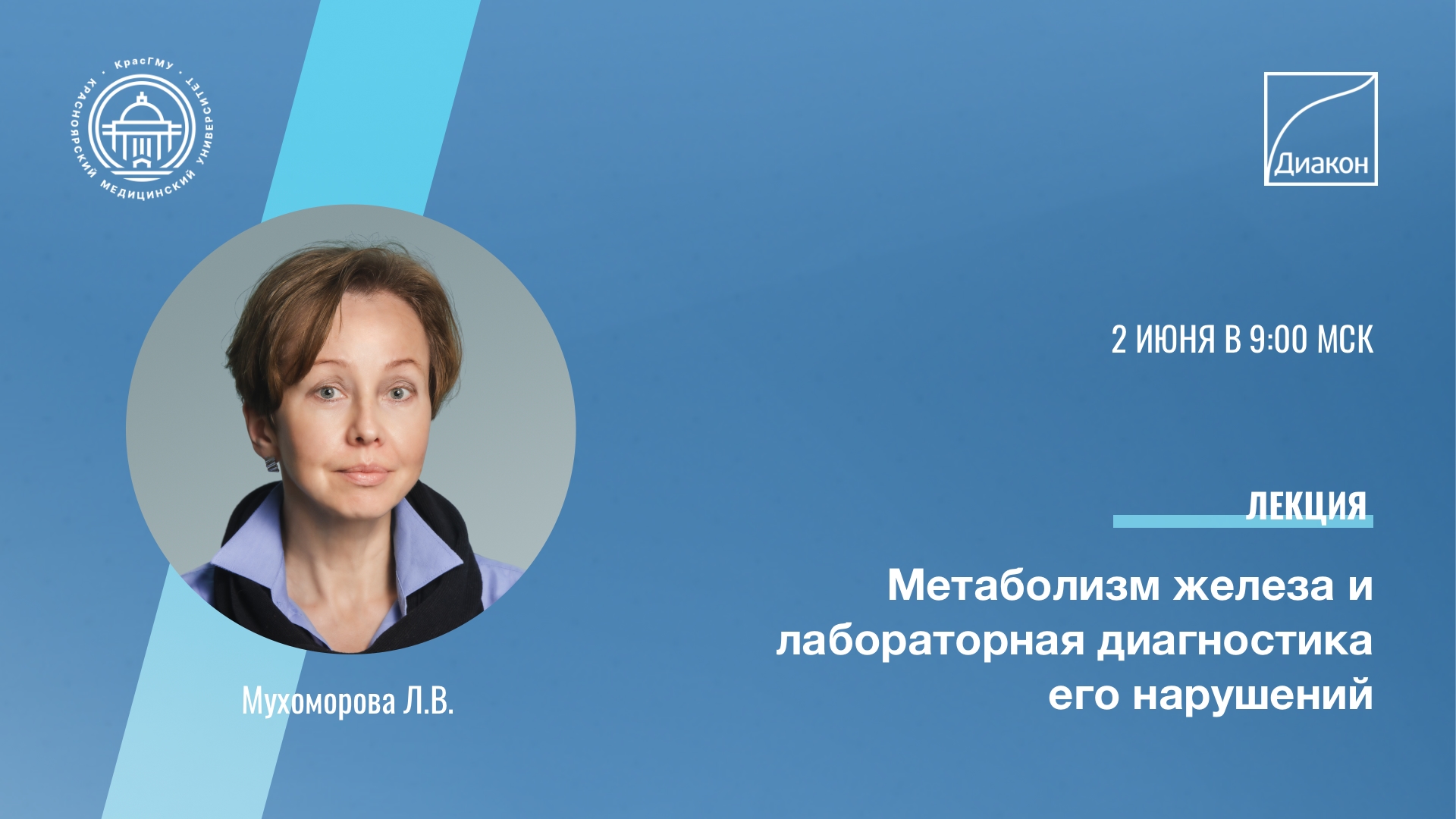 2 июня с лекцией выступит старший медицинский советник компании Лариса Мухоморова, которая расскажет о метаболизме железа и лабораторной диагностике его нарушений. Василий Вельков продолжит программу с лекцией о современной лабораторной диагностике критических состояний, С-реактивном белке, прокальцитонине и пресепсине.