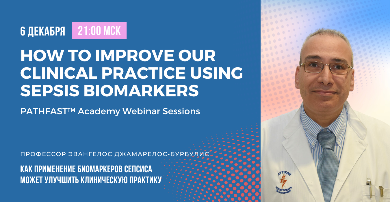 Мероприятие состоится 6 декабря в 21:00 по МСК. Регистрируйтесь и присоединяйтесь к трансляции, в ходе которой профессор Эвангелос Джамарелос-Бурбулис обсудит со слушателями вопрос — как применение биомаркеров сепсиса может улучшить клиническую практику.