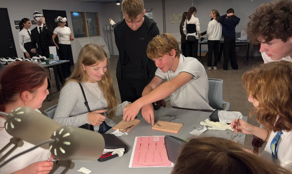 Виртуальная реальность — это яркая точка входа, но основная задача проекта — дать ребенку возможность подержать инструменты в руках. Поэтому мы построили программу как серию практических мастер-классов, где каждый участник проходит через несколько функциональных станций. Например, на станции «Хирургические навыки» на специальном тренажере участники пробуют наложить хирургический шов, на станции «Богатый внутренний мир» можно выполнить УЗИ сосудов и сердца с помощью переносного аппарата. Это даёт школьникам возможность приобрести не только теоретические знания, но и важные мануальные навыки, необходимые врачам будущего. Вместе с нашими врачами они переодеваются в сердечно-сосудистых хирургов и под их чутким руководством изучают анатомию и принципы работы сердечно-сосудистой системы на станции «Анатомический театр».