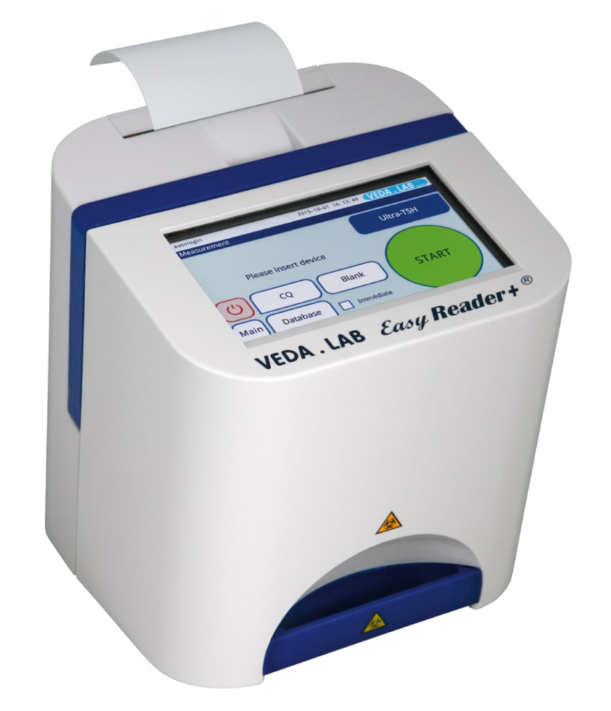Экспресс-анализатор Easy Reader® от французской компании VEDALAB – компактный переносной ридер для количественного считывания результатов иммунохроматографических тестовых кассет. Принцип метода: отражательная фотометрия с использованием цифровой камеры и программы встроенной калибровки параметров считывания. Для проверки оптической системы прибора используется набор контрольных устройств, состоящий из бланк- кассеты и калибровочной кассеты.